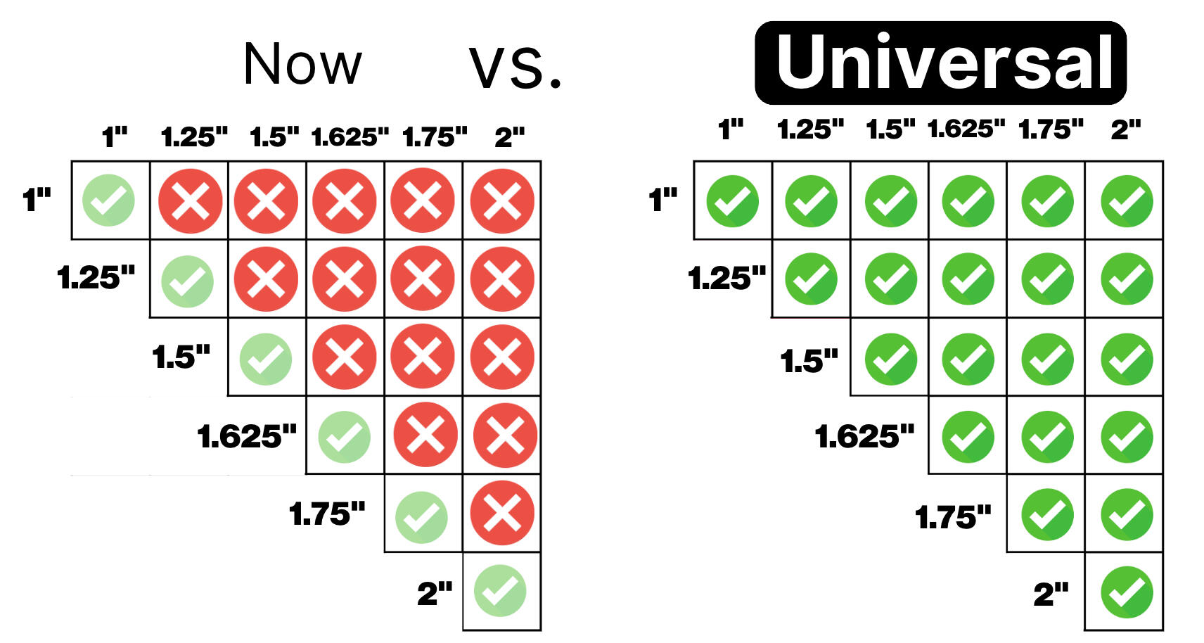 In plain English: Access to our complete mixed-diameter Universal Connector Notching System for just $45 or pay the full $95 later if you want them.